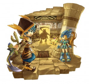 君塚氏:今回追加されるマップはエジプトがモチーフになっています。「エンジェルラブオンライン」にはもともと砂漠地帯も存在していたんですが、「イビルキャット」という猫型のモンスターたちが、この砂漠地帯のオアシスを中心に文明を築いてきたんです。この文明では太陽神を崇める宗教的文化も浸透していたんですが、プレイヤーと敵対するサタンの軍勢がこの太陽神に目をつけて、その力を自分のものにしてしまうんです。そこで、プレイヤーたちはサタンの野望を食い止めるために砂漠地帯へ向かう、というところからメインストーリーが始まります。