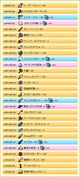 2011年10月6日(木)からお得なアイテムが毎日貰えるログインキャンペーンを実施いたします。