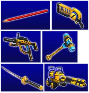 (エンピツHB、トリプルショットガンS、ファントムマシンガンS、ボルテックハンマーS、ムラマサブレード(銀)、パンツァー・ガトリングS)