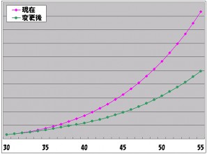 一例として、累計の経験値については、特に減少率の高いキャラクターレベルの「レベル30~レベル55」のグラフをご覧ください。