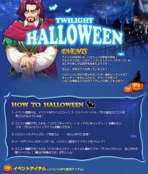 今年もハロウィンの季節がやってきました。テルミヌスでは、ハロウィンゴーストナイト「デネーブ」が何やら怪しげな商売を始めたそうです。クエストをコンプリートしてハロウィンイベント限定の素敵なアイテムをゲットしよう