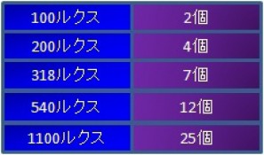 ※「VH ギフト」は、1回の「ルクス」チャージ額によってもらえる数が変わります。
