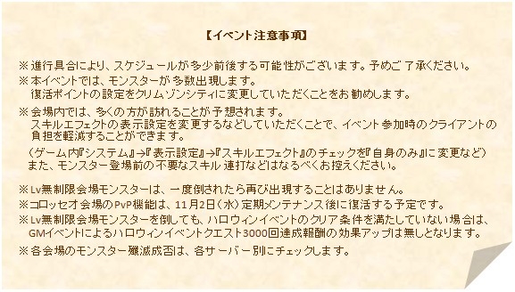 2011年10月30日(日)19時から討伐完了、または2011年11月2日(水)定期メンテナンス開始前まで