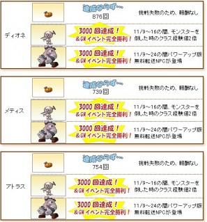 「ハロウィン大運動会」の気になる結果が発表されました。イベント報酬として、モンスターを倒した時に得られるクラス経験値2倍と無料転送NPCが登場します。