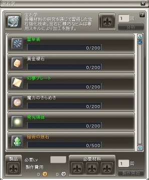 宝石学はヒム専用の種族生産スキルで、各種材料の分析と各種宝石の加工を行うことができます。特定のアイテムの分析を行うと、材料を消費して分析したアイテムの経験値を獲得できます。材料の分析経験値が上限に達した場合、自動的に特化宝石の製法を習得できます。習得した状態では特化宝石の製作またはレベルアップが可能で、レベルアップを行うと更なる上級材料の分析方法を習得できます。しかし、現在の特化宝石の製法は上書きされます。