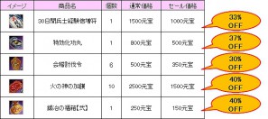 「三国群英伝ONLINE2」は日頃の感謝の気持ちを込めて、大変お得な「特売セール」を実施いたします。2週間だけの「特売セール」では、精錬が失敗しても装備の破損を防げる「火の神の加護」や、取得経験値が2倍になる「30日間兵士経験倍増符」などの人気アイテムを通常価格より、大特価でご提供いたします。