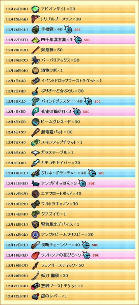 2011年11月24日(木)からお得なアイテムが毎日貰えるログインキャンペーンを実施いたします。