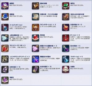 「カイアのバトルチェスト」を使用すると以下のアイテムの中からどれか1つがランダムで手に入ります。