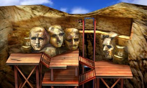 絶壁に造形された偉人の像。老朽化しており所々足場が崩れてしまうことがあるので、十分注意しよう。
