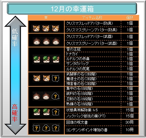 「12月の幸運箱」確率表