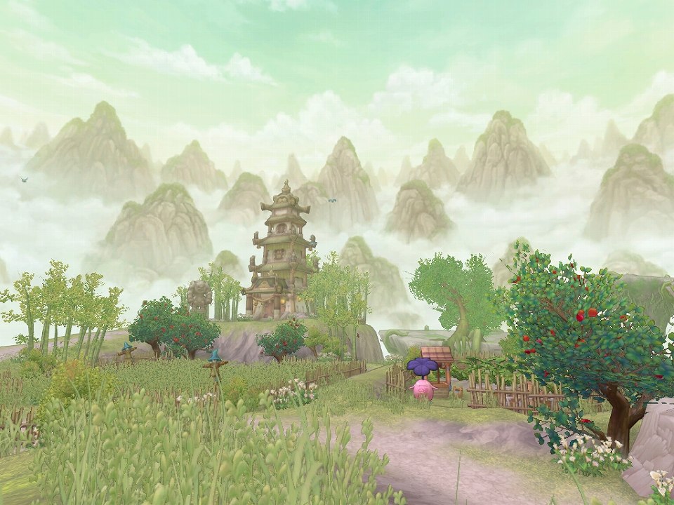 ベアル種族は「ベアロン山脈」からゲームがスタートします。ベアロン山脈はオリエンタルな雰囲気が漂う山岳地帯で、切り立った岩の険しさと、遠くに見える山脈の幻想的な光景が入り混じった不思議な地域です。