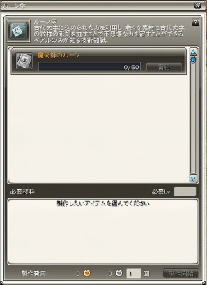 また、製作経験値が上限に達した種類のルーンは習得ボタンがアクティブになり、習得ボタンを押すと、そのジョブのスキルに関連したルーンを1種類習得できます。習得する新しいジョブの種類及びスキルに関連したルーンの習得はランダムで決定されます。