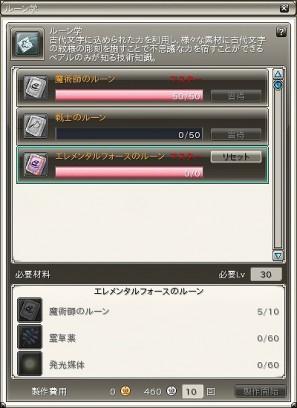 一例として、魔術師のルーンをマスターした事により、戦士のルーンを製作可能になりました。また、魔術師のルーンを習得により、エレメンタルフォースのルーンが作成可能になりました。