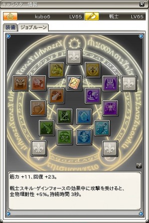 キャラクター情報の中に新しく「ジョブルーン」のタブが追加されます。ここにスキルのルーンを装備する事により、ルーンの効果が適応されます。注意点として、ルーンの装備には一定のジョブレベルを必要とします。また、ルーンは装備するとトレードが不可能になり、装備後に一定期間を過ぎると消滅します。