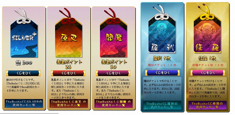 3.TheBushoくじ「SILVER+(プラス)」、「夜叉(※)」、「閻魔(※)」、「羅刹」、「修羅」を追加