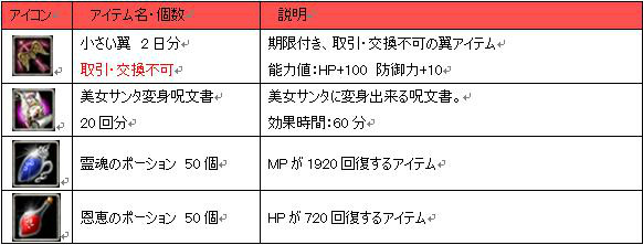 ※ランダムで貰えるアイテムはリスト内のうち1種類だけ振り込まれます。