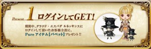 期間中、「グラナド・エスパダ ルネッサンス」にログイン頂いたお客様全員に、Pureアイテム【バペット】をプレゼント!!
