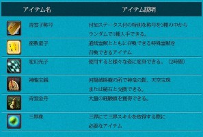 ランダムで強化関連アイテムや経験知倍増アイテム、霊獣の新密度を上げるアイテムなどお役立ちアイテムを獲得することができる。