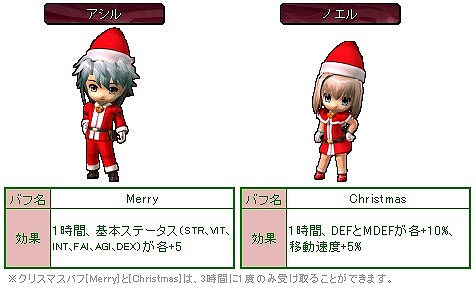イベント期間中、基本ステータスや移動速度を上昇させるバフをかけてくれるかわいいNPCが登場します。「クリムゾンシティ」の噴水前にはNPC「アシル」、「アルカディアシティ」の中央広場にはNPC「ノエル」です。それぞれ違うバフをプレゼントしてくれるお二人に、ぜひ会いに行ってみてください。