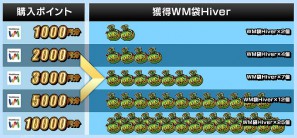 ※「WM袋Hiver」と「甘欲袋Hiver」はリストにあるアイテムの中から抽選で1個当たります。