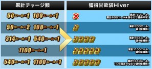 ※「甘欲袋Hiver」はキャンペーン期間中にチャージされた「エール」の累計が対象となります。