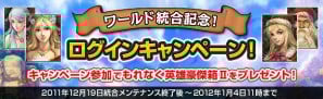本日の平成23年12月19日(月)の定期メンテナンスにおいて「フェニックスワールド」と「レオワールド」が統合し、「ガイアワールド」が誕生しました。ワールド統合を記念し、期間中7日間以上ログインをされた方にもれなく豪華なアイテムをプレゼントいたします。新しいワールド、新しい仲間と共に黄金のアレグリアをお楽しみください。