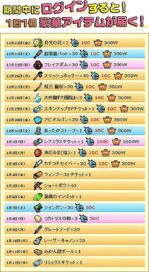 2011年12月23日(金)からお得なアイテムが毎日貰えるログインキャンペーンを実施いたします。