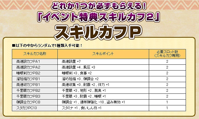 ※「スキルカフP」のイベントコード配布日時は、キャンペーン期間終了後となっております。ご注意ください。