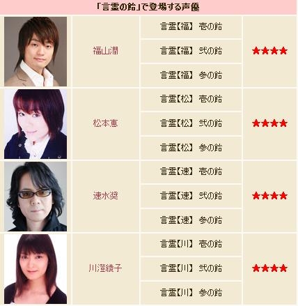 さらに、使用すると声優のボイスで戦闘を楽しめる「言霊の飴」には、大人気声優の福山潤さん、松元恵さん、速水奨さん、川澄綾子さんの超豪華ラインナップが登場!人気アイテムを手に入れるチャンス! お見逃しなく!
