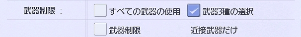 「近接武器」の他に2種類だけ武器を限定することができるシステムです。「ルーム作成」の際に表示される画面もリニューアルにより、わかりやすくなり、「武器選択システム」の幅がひろがりました。お好みにあわせて得意武器をチョイスするもよし、独自の選択(武器制限)で新たな遊び方をするもよし、発想次第でどんどんひろがります。