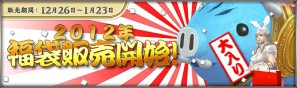 期間限定で「2012年騎馬福袋」と「2012年傭兵福袋」を販売いたします。「2012年騎馬福袋」の中身は横暴に振舞う自由度抜群の「暴君猪」や、特別な時にだけその愛しい姿を魅せる「愛兎」、そして全身が戦甲に覆われた絶世の名馬「氷皇」等、豪華な騎乗が目白押し!「2012年傭兵福袋」には既に厳しい訓練を終え、等級60までUPした頼もしき各種「兵士」が入っています。ゲームをよりスピーディーに、そしてよりスムーズに進むのにおすすめの一品となっております。