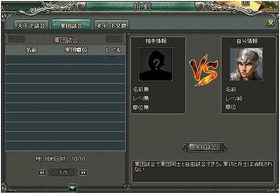 機能開放:軍団に入ったら同軍団のプレーヤーと挑戦できます。