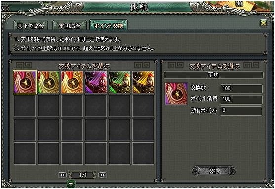 9.ポイント交換ショップにポイントを軍功或は声望と交換できます。