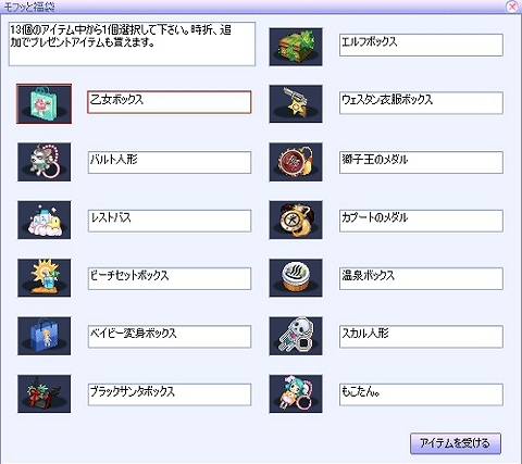 ※レアアイテムは、福袋の中から希望のアイテムを選択することで獲得できます。