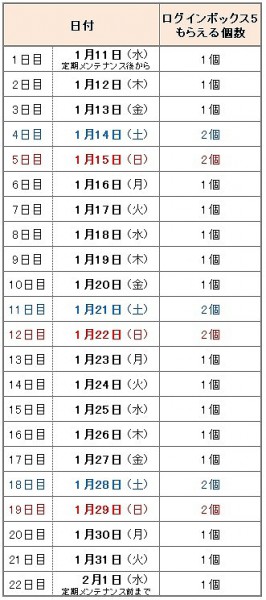 この「ログインボックス5」の中に入っているのは、お馴染みのアイテムだけではありません!