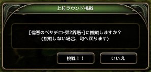 第1 界層から開始する場合、第2 界層へ連続して進行するか選択でき、第2 界層から開始する場合はラウンド21 からとなります。第1 界層終了後に第2 界層に挑戦するか確認メッセージが表示されます。