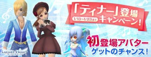 ガマニアデジタルエンターテインメントは、「ルーセントハート」において、新たなミニペット「女神の精霊」シリーズの第一弾として「ティナー」を実装し、「ティナー登場キャンペーン!」をした。