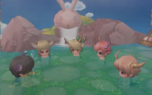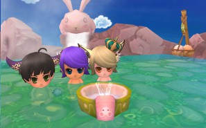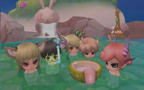 ギルドアイランドは、ギルド全員で使える共有空間。みんなで温泉につかり、メンバーと