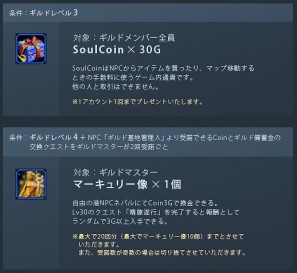 期間中、ギルドの建設やギルドレベルアップごとに豪華アイテムをプレゼントいたします!