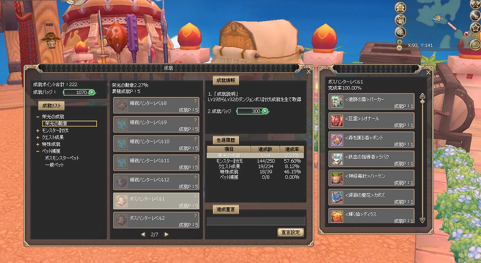 セット成就とは、複数の条件が設定されており、その全てをクリアすることで達成できる成就です。セット成就を達成することでポイントを得ることができます。
