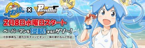 2月8日(水)定期メンテナンス後より、大人気アニメ「侵略!?イカ娘」が、なんと「ペーパーマン」を侵略します! 一体どんな侵略が始まるのか、後日詳細を公開いたします!新たなコラボレーションに、ぜひご期待ください!