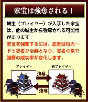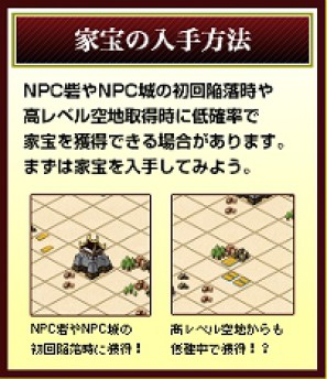 「家宝」はNPCの拠点などで入手することができます。「家宝」の効果は様々ですが、手に入れることで天下統一に向けて一歩リードすることができるかも?