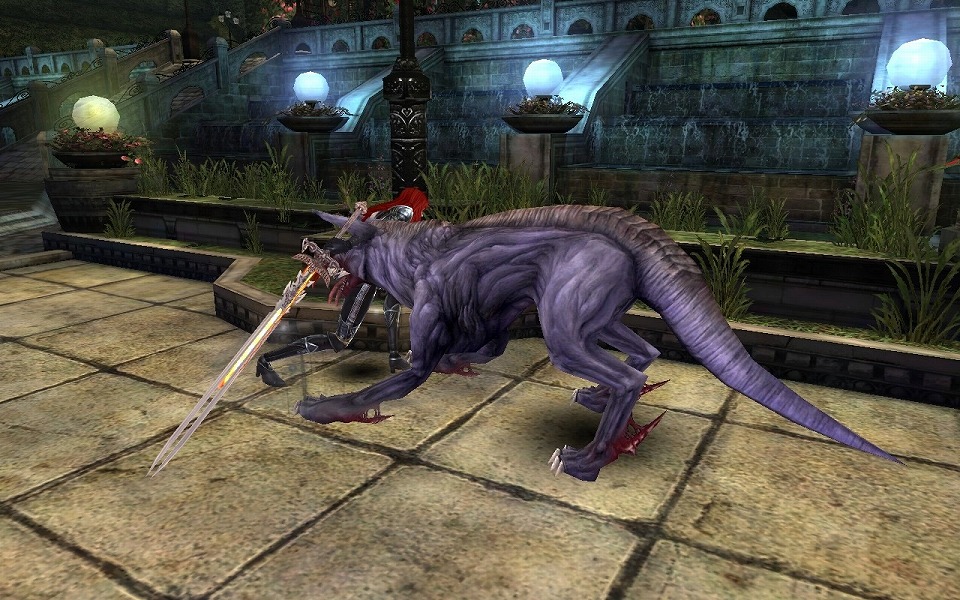 敵多数に大剣と蹴りの連続攻撃を食らわす。