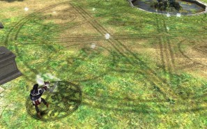 大剣を横に大きく振りまわして起こした風で敵をふき飛ばす。