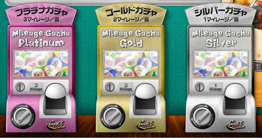 「マイレージガチャ」を回すたびに、高額ミト、V9 車をはじめ素敵なアイテムを獲得するチャンスがあります。ガチャの種類は3種類。プラチナガチャ、ゴールドガチャ、シルバーガチャがあり、それぞれ必要なマイレージポイントが異なります。ぜひお試しください!