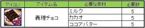 「港都アスターク」から「クルベリア」までの各マップに出現するモンスターがドロップするチョコレートの材料を集めて、チョコを作って食べると、アラ不思議!色んなバフ効果が現れます。作ったチョコの個数により、新たな「称号」まで獲得できちゃいます。たくさん材料を集めて、たくさんチョコを作ってみましょう!