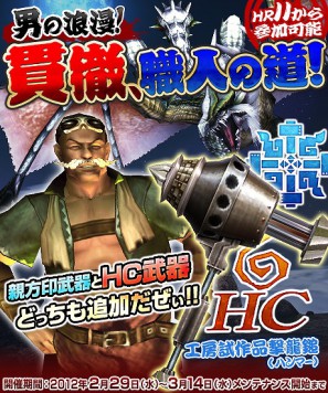 このイベントでは、配信されるクエストをクリアすることで、オリジナル武器「工房試作品撃龍鎚」(ハンマー)の生産素材が入手可能です。さらに、今回配信されるクエストをクリアし、各種強化素材を集めることで、≪親方印≫や≪HC 武器≫へ強化することができます。