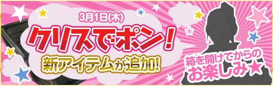 本日3月1日(木)定期メンテナンス終了後より「クリスでポン!」出現アイテムを追加いたします。