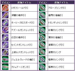 ※リスト中の色つきアイテムが、今回登場した新アイテムです。