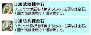 一部モンスターのドロップアイテムに、「D級錬金石」や「Dランクの装備」などを追加いたしました。「D級錬金石」はDランクの武器や防具を精錬するのに不可欠な素材で、今まで見た事のない者も少なくないという・・・。
